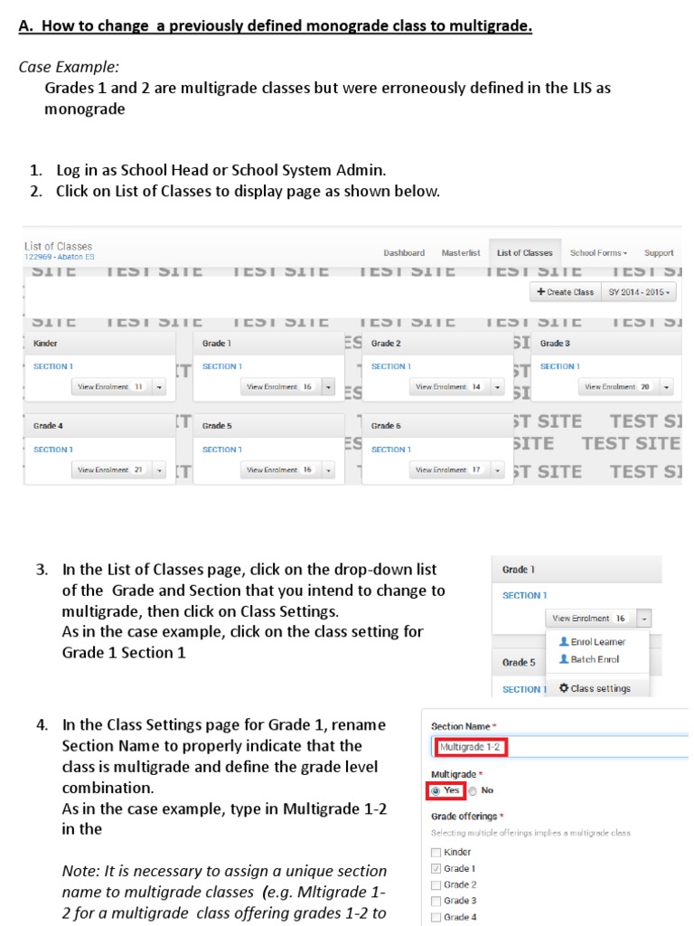 Steps In Updating Class Settings For Multigrade And Monograde