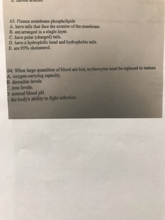 Solved 63 Plasma Membrane Phospholipids A Have Tails Th Chegg Com
