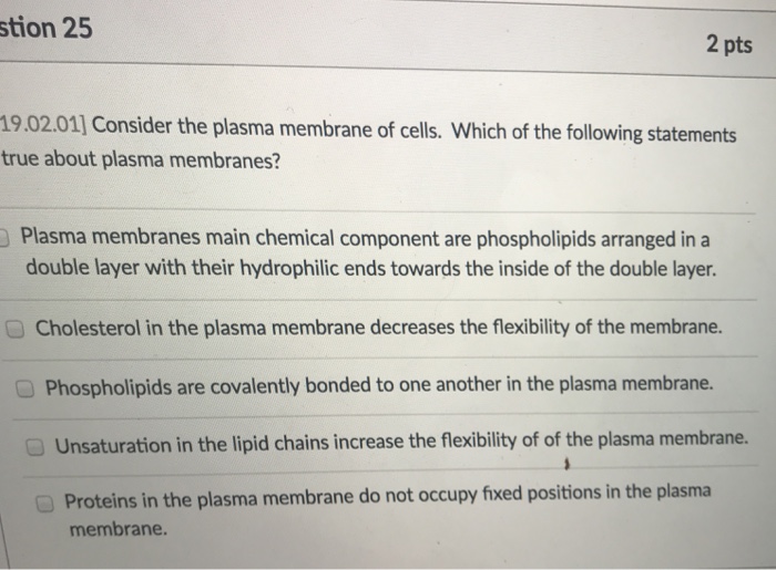 Solved Consider The Plasma Membrane Of Cells Which Of Th Chegg Com