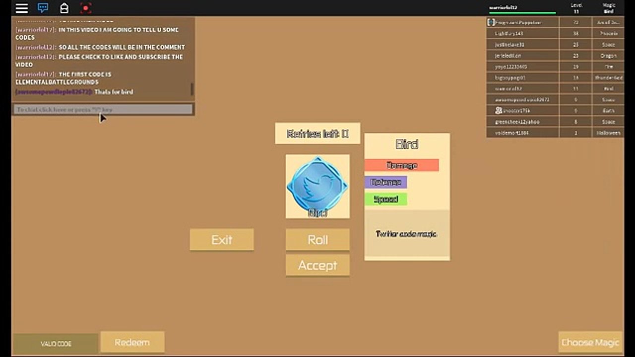 Roblox Elemental Wars Bird Magic Twitter Code In Desc Defended