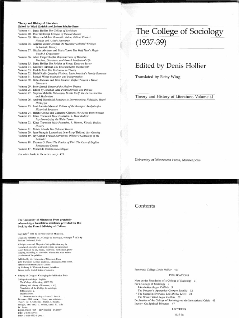 Hollier Denis The College Of Sociology 1988 Surrealism France